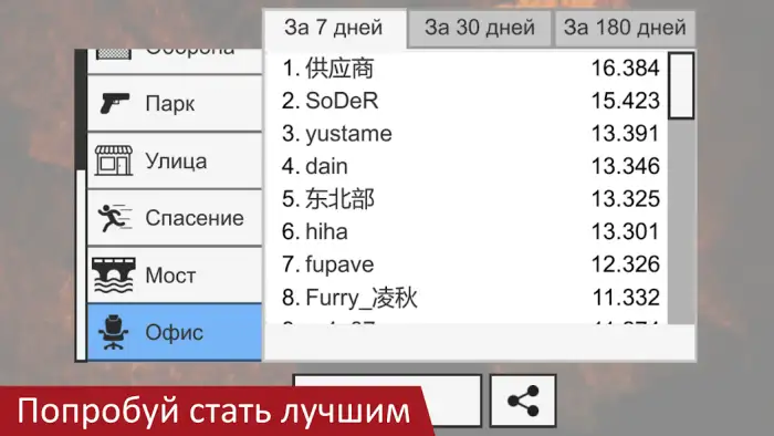 - есть рейтинговая система с таблицей лидеров по количеству убитых зомби;