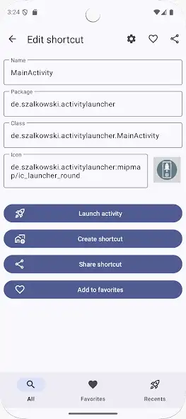 - Имя пакетаde.szalkowski.activitylauncher