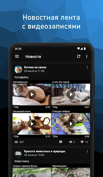 «Video App для ВК» — менеджер для поиска, просмотра видеоматериалов из социальной сети «ВКонтакте». Имеются закладки, плейлисты. Присутствует лента новостей с роликами из сообществ, на которые оформлена подписка. Есть реклама, темная и светлая темы, видеоплеер. Программа сохраняет историю просмотренных материалов. Имеется раздел настроек.