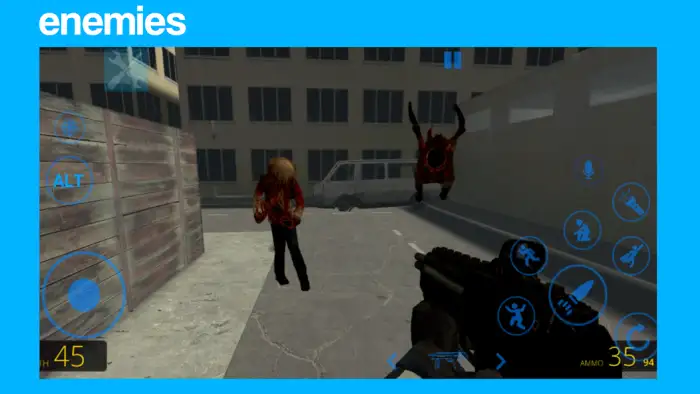 Dmod — шутер с элементами песочницы про исследование открытого мира, борьбу против других людей и зомби. Предстоит использовать оружие, например: бластер, автомат или пистолет; находить инвентарь; перемещаться на автомобилях и иных транспортных средствах. Можно играть офлайн. Язык интерфейса английский. Имеются однопользовательский и многопользовательский режимы. Управление осуществляется экранными клавишами действий и джойстиком. На экране отображаются кнопки паузы, микрофона и заморозки, количество боеприпасов, уровень здоровья, прочая информация.