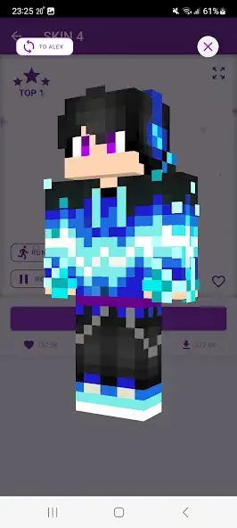 Имеется редактор, скачиваемый отдельно, в котором возможно изменять пиксели и детали изображения. Позволяет добавлять облики к избранному контенту, загружать их в галерею устройства. Совместим с демоверсией Minecraft. Контент обновляется ежедневно. Совместим с другими играми, например Craftsman. Есть реклама и внутриигровые покупки.