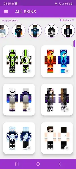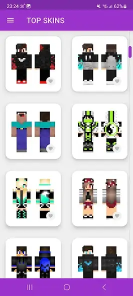 «ПвП скины для Майнкрафт» — мод, добавляющий в одноименную песочницу образы персонажей с разрешением 64 × 64. Присутствуют: облики действующих лиц мультипликационных фильмов, монстров, животных, роботов и прочих героев; подборки внешних видов, например, по популярности. Есть темная тема, подробное руководство по установке, статистика скинов и их предварительный просмотр в трехмерном отображении.