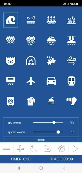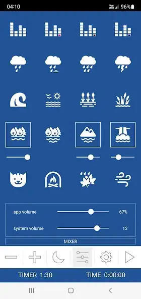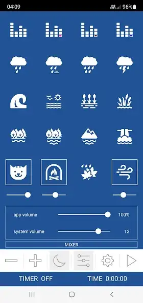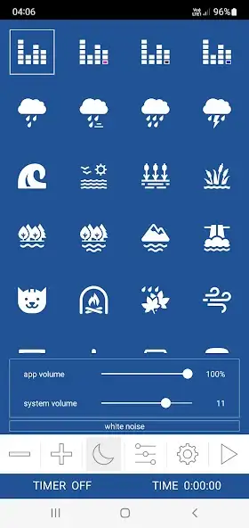 Можно использовать таймер с постепенным уменьшением громкости, создавать миксы из двух и более звуков, регулировать интенсивность звучания каждой аудиозаписи. Доступны шумы водоемов, природных явлений, другие. Имеется беззвучная реклама. Присутствуют функции беспрерывного воспроизведения и проигрывания в фоновом режиме. Программа работает без интернета. Есть настройка громкости приложения и устройства.