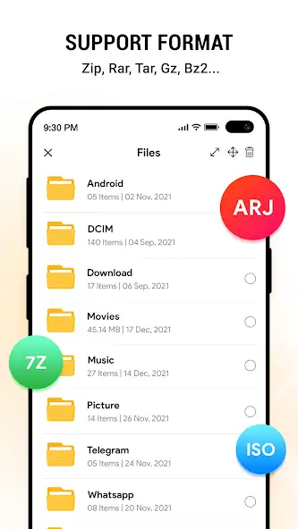 Zip RAR — архиватор с функцией менеджера файлов для их сжатия или извлечения. Поддерживает 7Z, TAR, TGZ, XZ, MP3, JPG, DOC и другие форматы. Позволяет создавать или распаковывать архивы, уменьшать размер элементов, упорядочивать документы, сжимать PDF- и видеофайлы. Присутствует функция установки напоминаний после завершения голосовых вызовов.