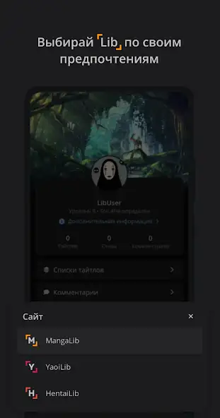 - выбирать сайты по предпочтениям, такие как YaoiLib, HentaiLib или MangaLib.