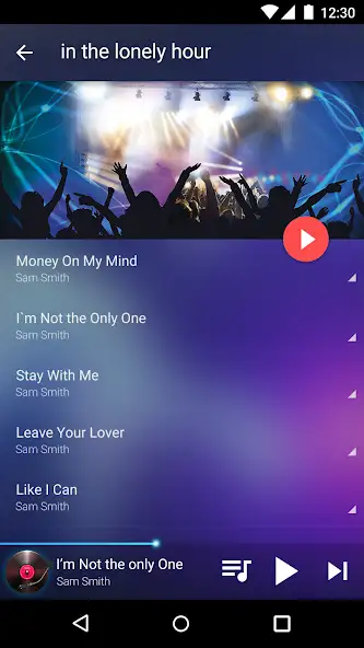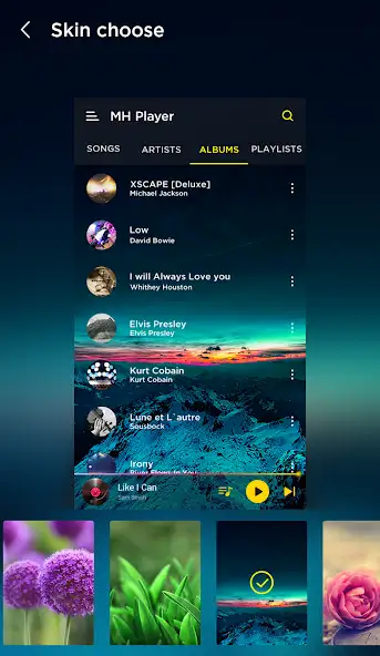 - Воспроизводить песни по исполнителям, плейлистам, папкам, альбомам.