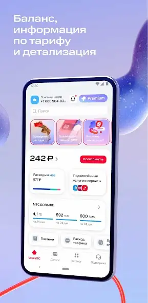 - доступное количество минут, SMS, трафика.