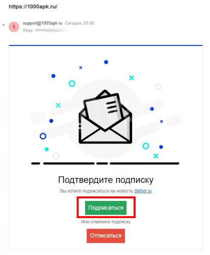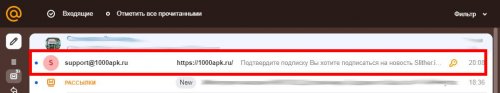 - Зайти в почтовый ящик и открыть письмо от 1000apk.ru.